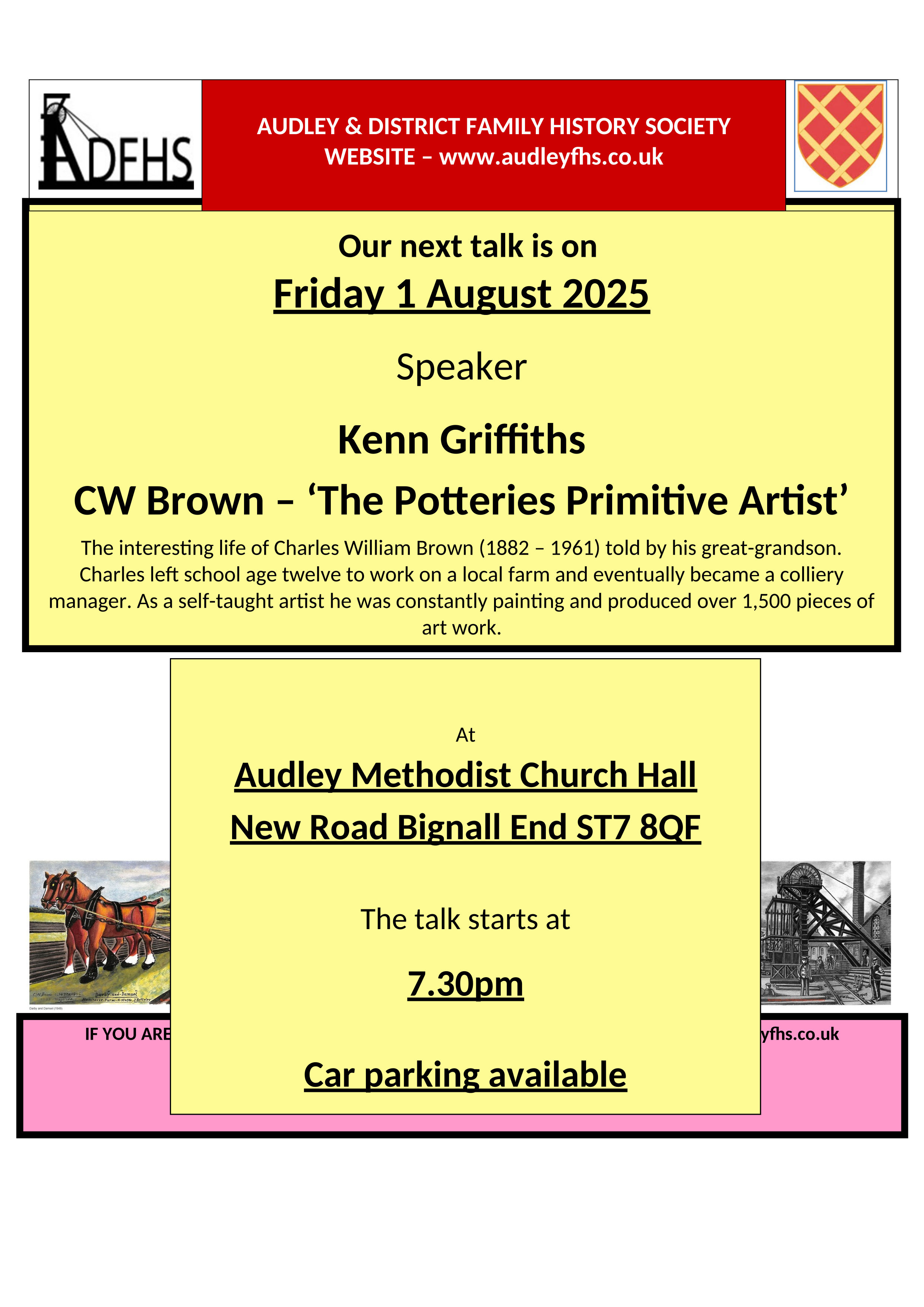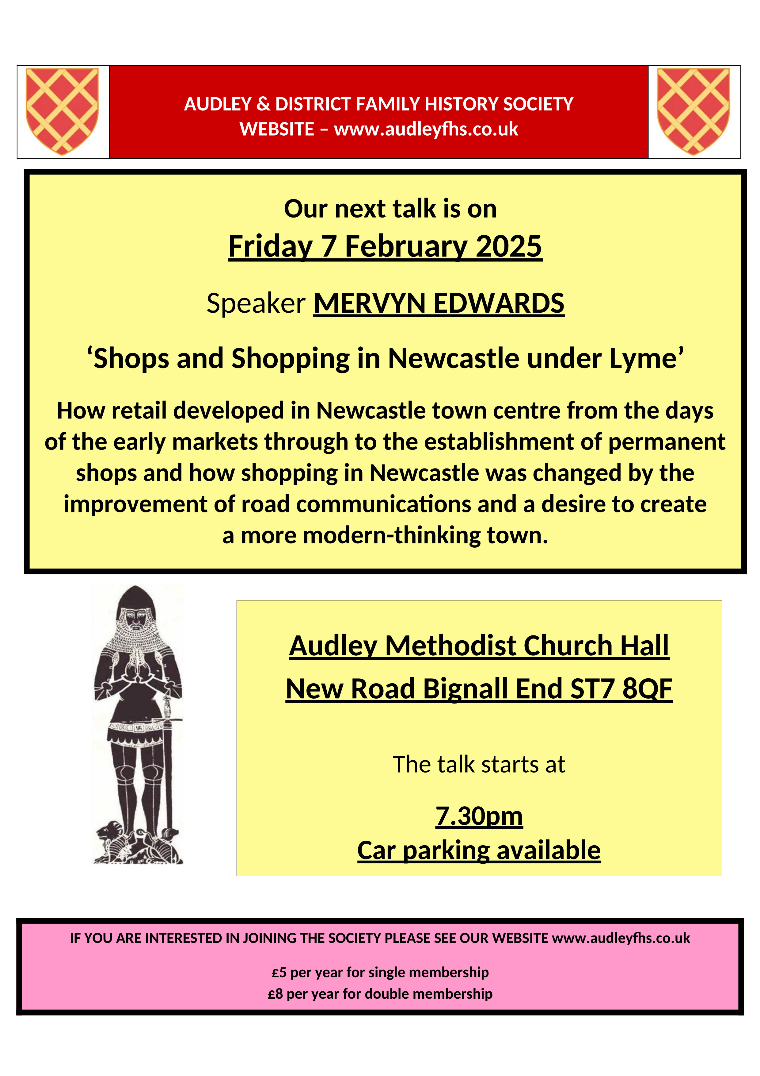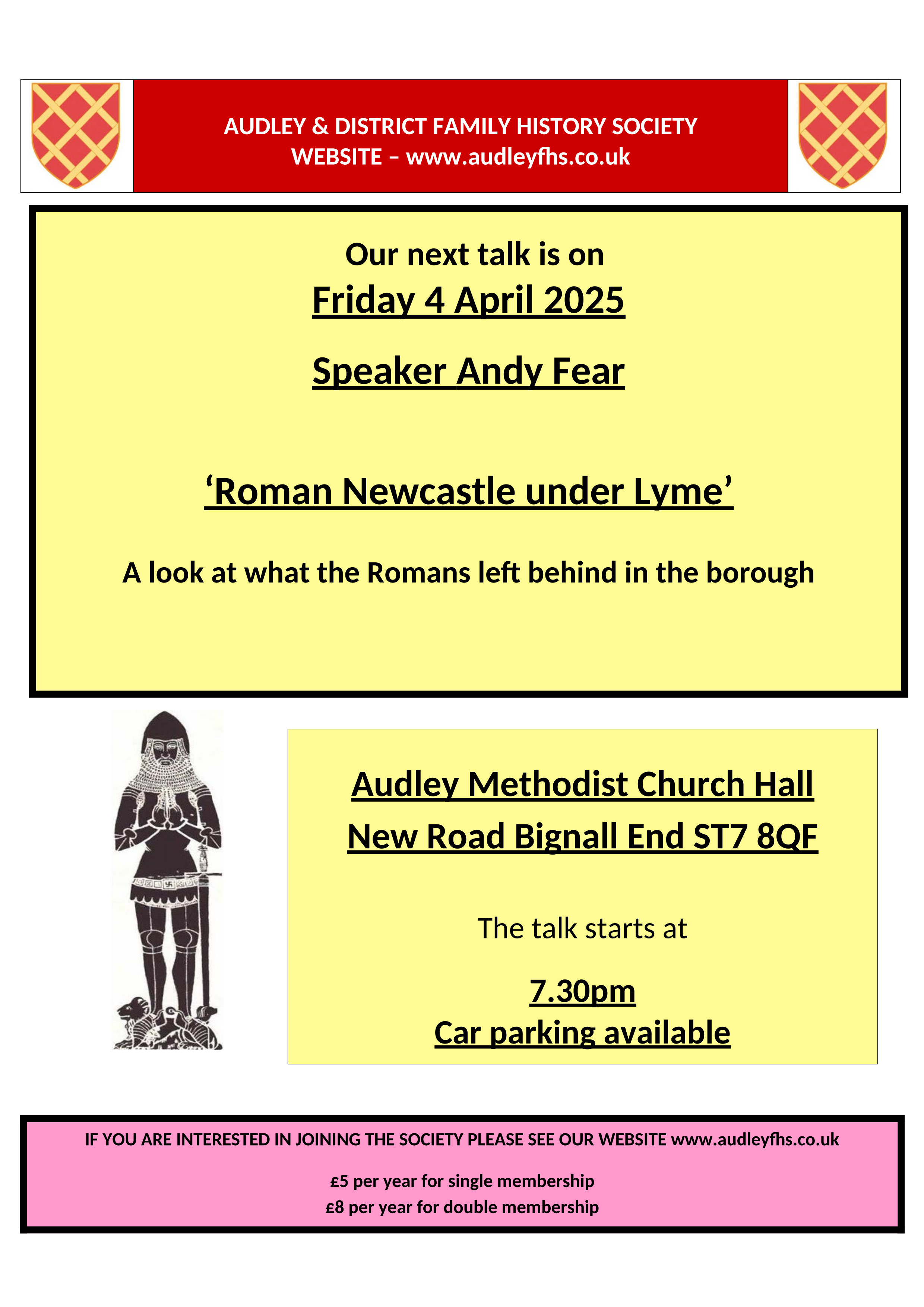 talks are free to members.Non-members are welcome on payment of £1. If you